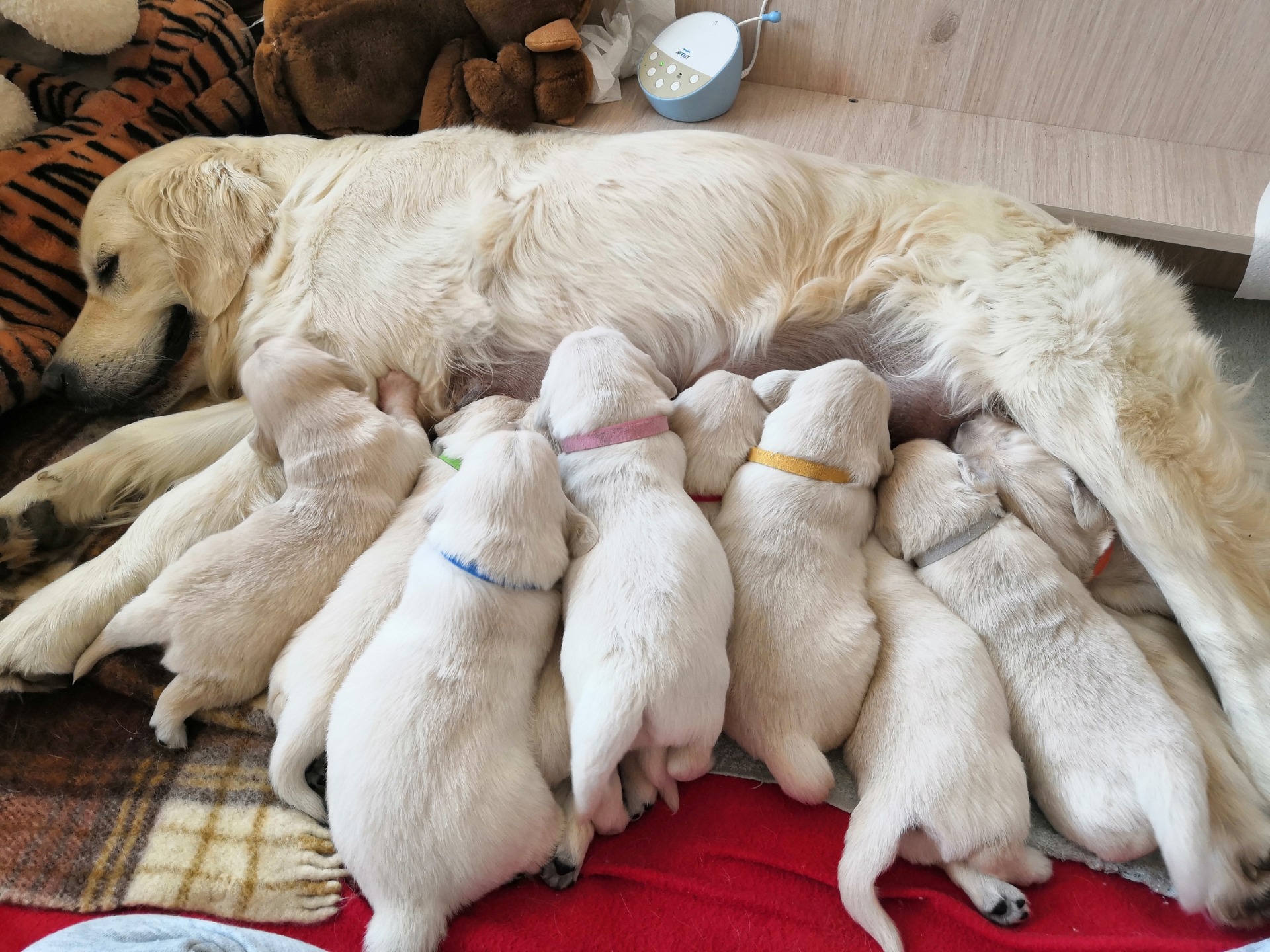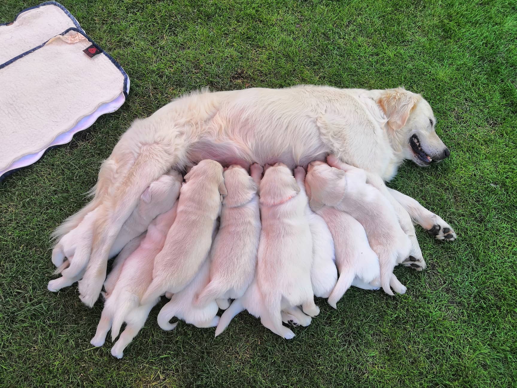 V 0:52 se nám narodila první holčička a porod trval až do 6:38 kdy se narodila poslední holčička. Celkem se narodilo 11 štěňátek, 7 kluků a 4 holčičky. Štěňátko číslo deset bylo bohužel trošku slabší než ostatní, a proto dostal jméno Apollon - bůh uzdravení, avšak nás 5.7. opustil, ač bojoval statečně. Všichni ostatní se ale mají čile k světu :)
